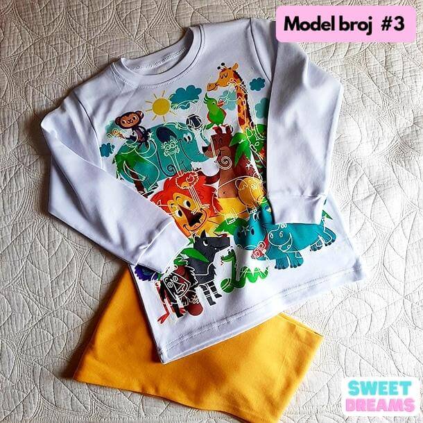Kvalitetni štampani ukrasi po cijeloj pidžami! U ponudi imamo MNOGO RAZLIČITIH modela! Izaberite jedan od omiljenih motiva i boju za vašeg mališana i obradujte ga. 🦄😻 👧🎄🐴 Naš komplet čini gornji i donji dio dugih rukava, a pamuk je srednje debljine, tako da se pidžama može nositi skoro tokom čitave godine.
